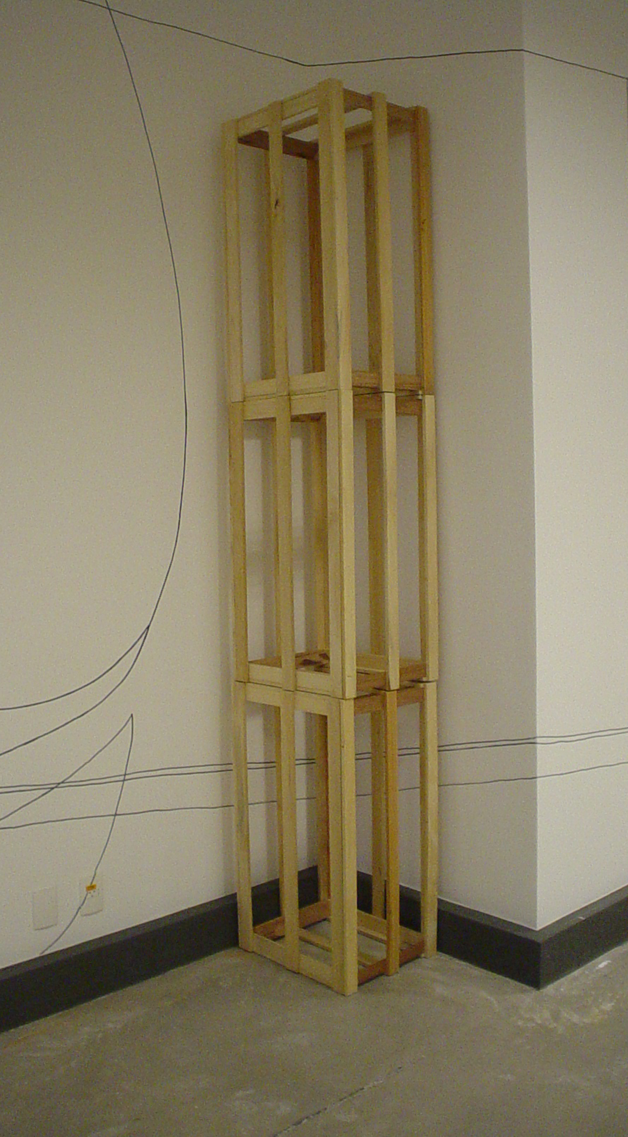 As caixas foram construidas gradativamente durante o período de residência; no início, as caixas eram arranjadas em vãos e nichos vazios dentro da oficina; no decorrer do processo, o número de caixas foi aumentando e estas passaram a configurar construções variadas e cada vez maiores.