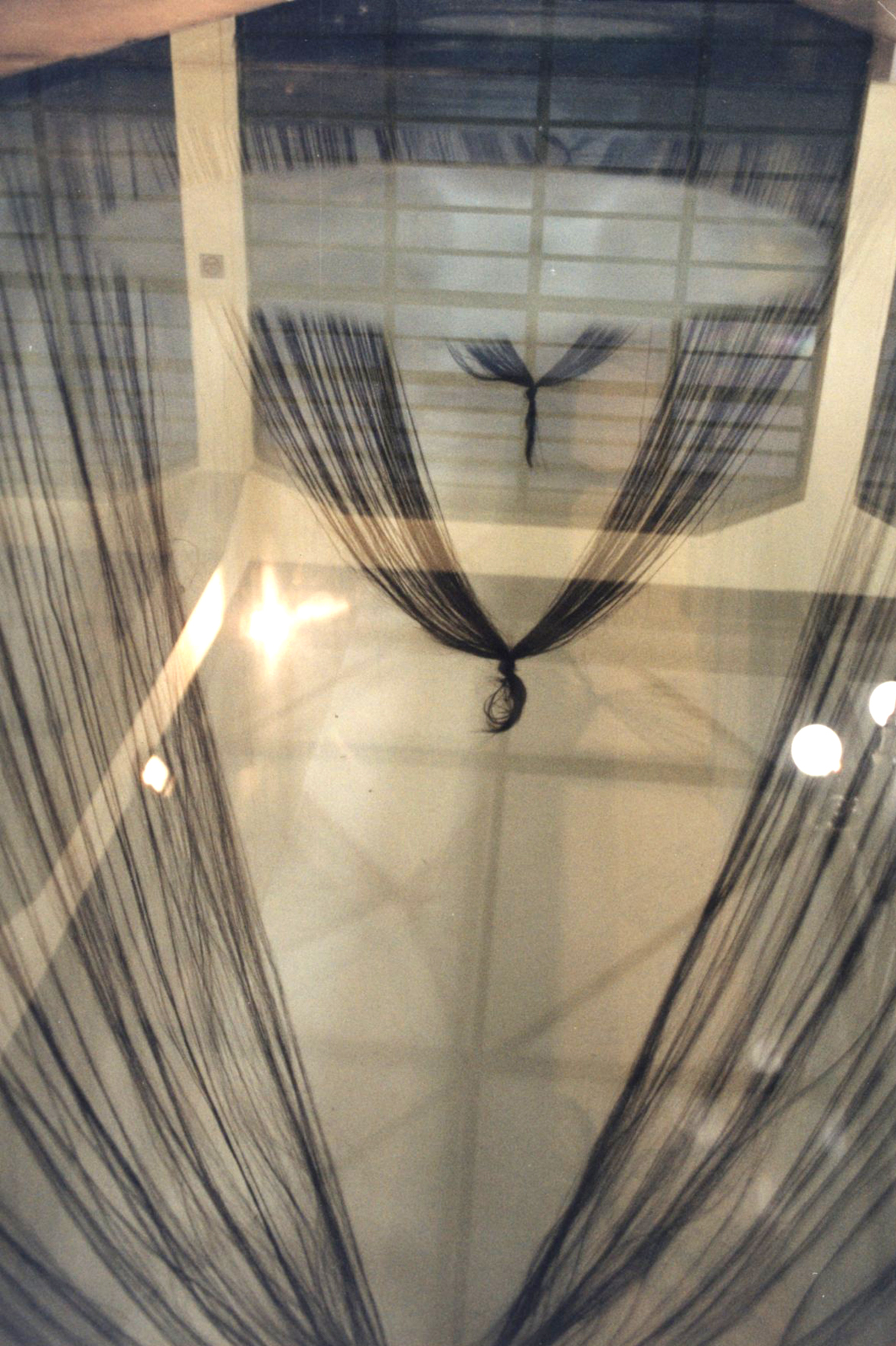 Seus veludos, fios de naylon, cabelos, costuras estão 1m-pregnados de corpo e de história. São histórias tênues, translúcidas, rarefeitas, que escorregam e escorrem pelas vias do imaginário. Comentam e clamam vida e desejo. Na verdade, constróem metonímias do desejo.